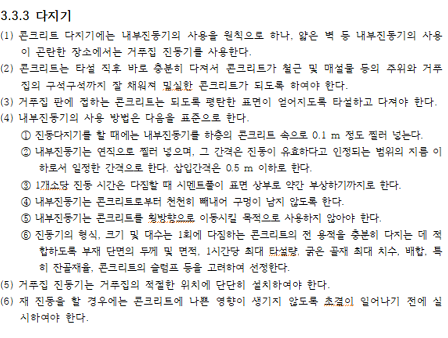 콘크리트 다짐의 국내 규정