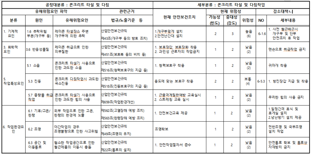 콘크리트 다짐 위험성평가 (예시)
