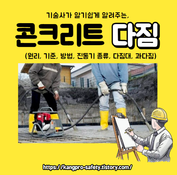 콘크리트 다짐의 원리와 방법, 다짐기, 진동기, 종류, 다짐대, 과다짐 등에 대한 정보입니다.